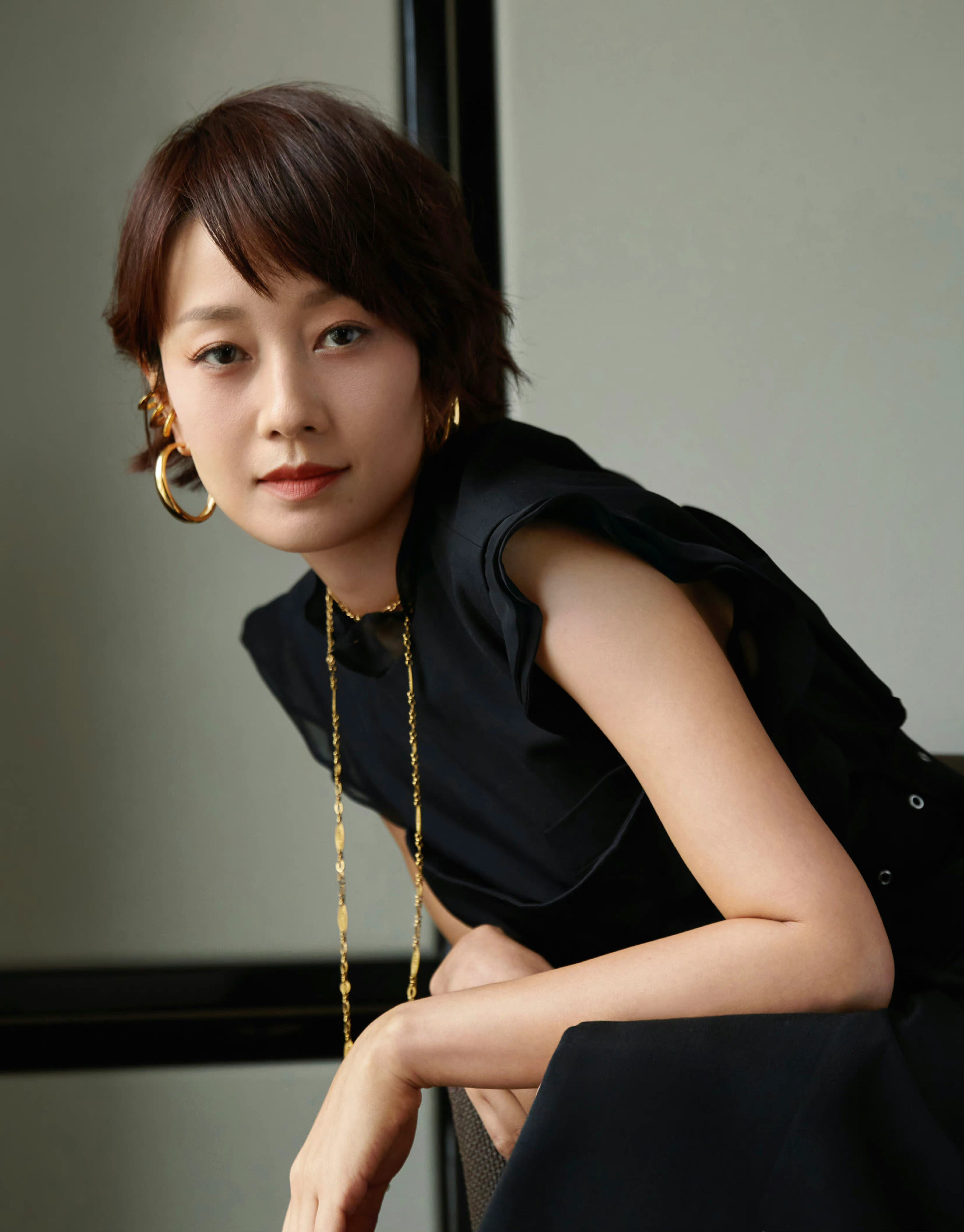 马伊琍短发司令黑色裙装
