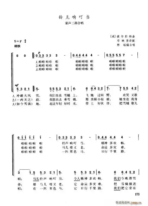 [美]铃儿响叮当(童声二部合唱)_简谱_搜谱网