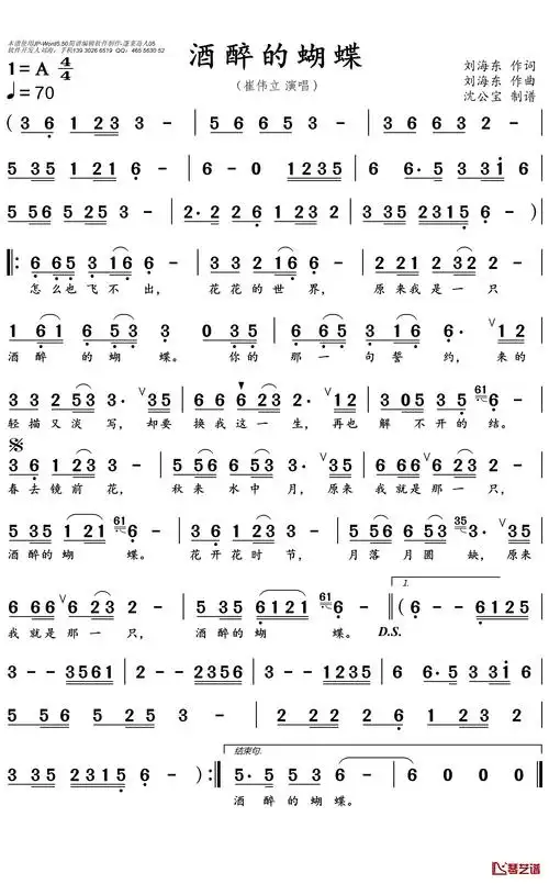 酒醉的蝴蝶简谱(歌词)-崔伟立演唱-沈公宝曲谱1