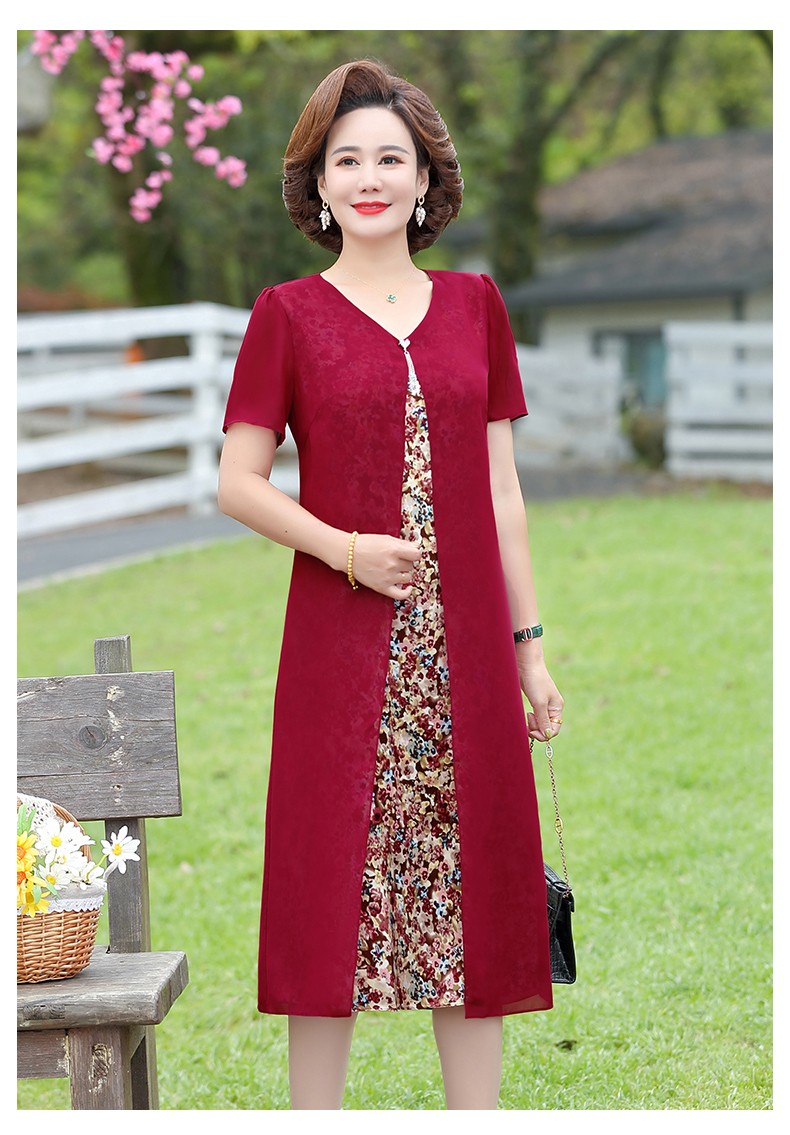称美中老年女装夏装短袖连衣裙405060岁新款中年妈妈装夏季雪纺裙子中