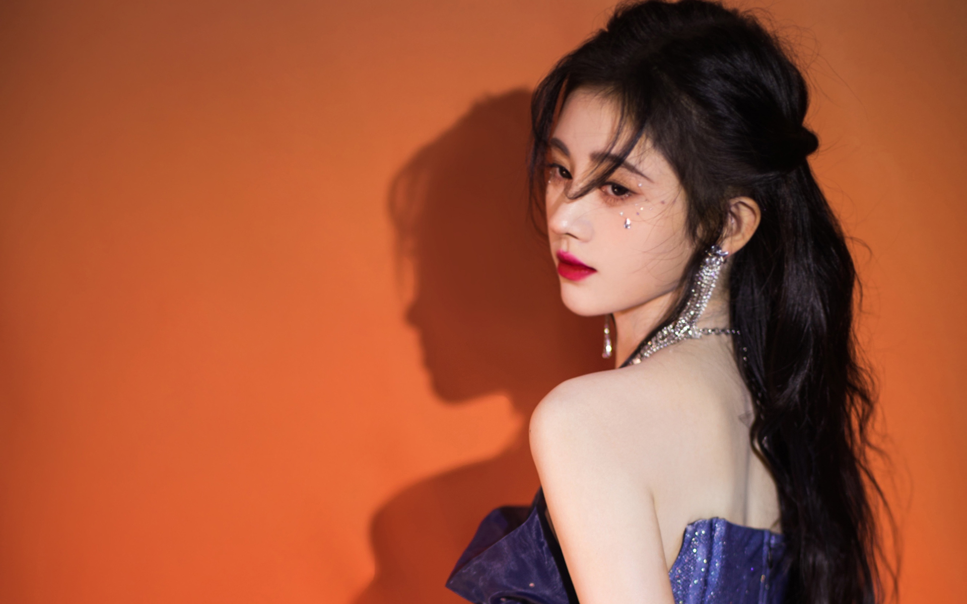 鞠婧祎抹胸纱裙甜美高清桌面壁纸