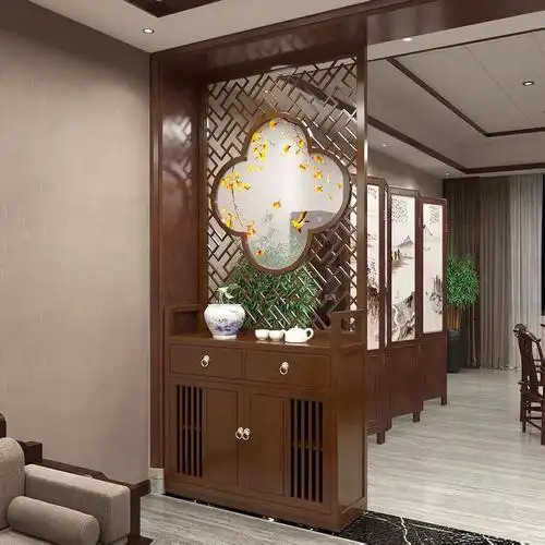 新中式玄关柜鞋柜门厅柜实木屏风隔断客厅复古镂空装饰遮挡入户门
