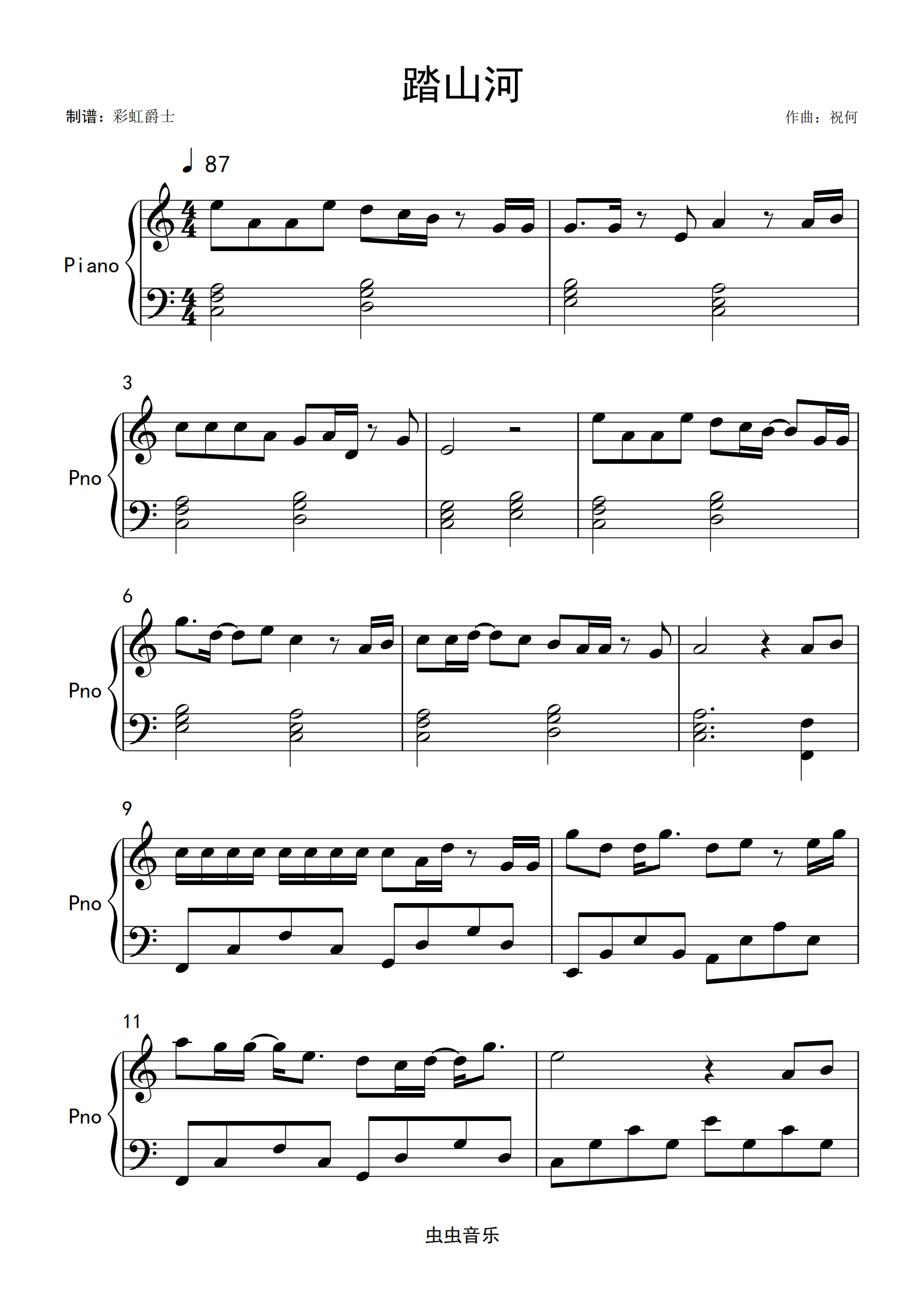 踏山河【c调进阶】钢琴谱-虫虫钢琴