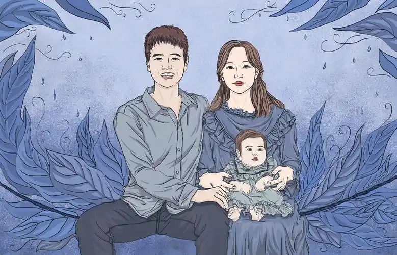 插画版的一家三口,带点卡通带点写实带点插画的味道,我也不知什么风格