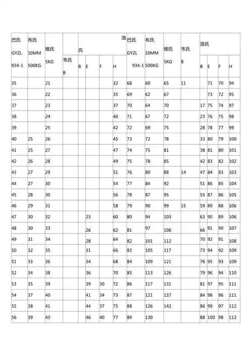 布氏硬度与洛氏硬度换算表