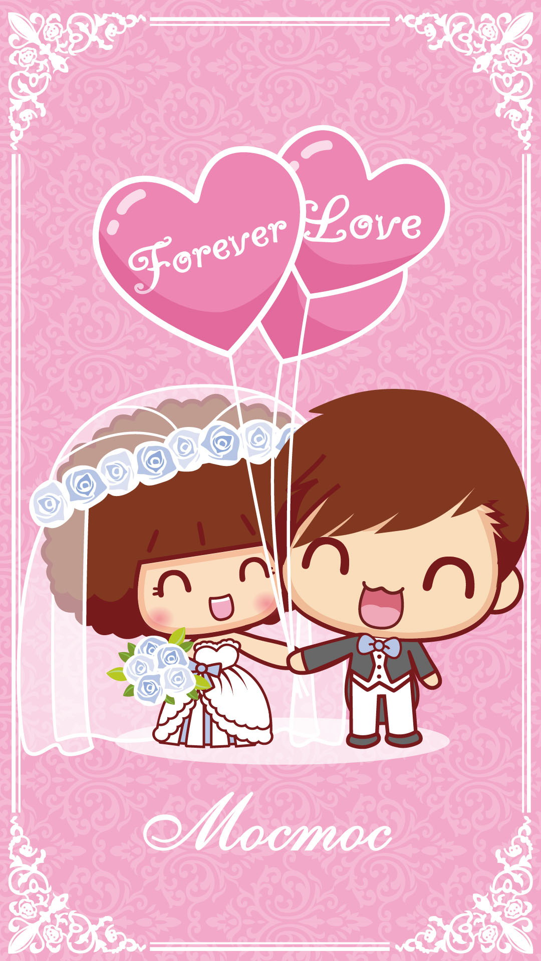 摩丝摩丝手机插画壁纸~我们结婚啦~甜蜜西式婚礼