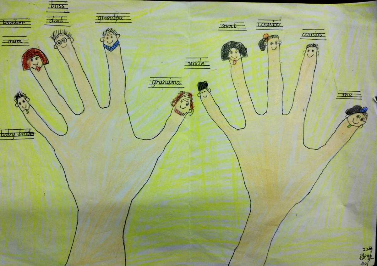 我们的手指大家庭 五口之家 亲亲热热在一起