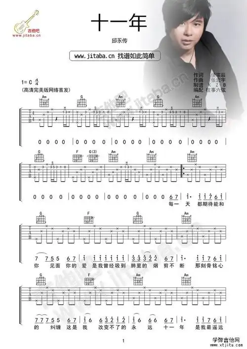 十一年吉他谱邱永传c调十一年歌词歌谱