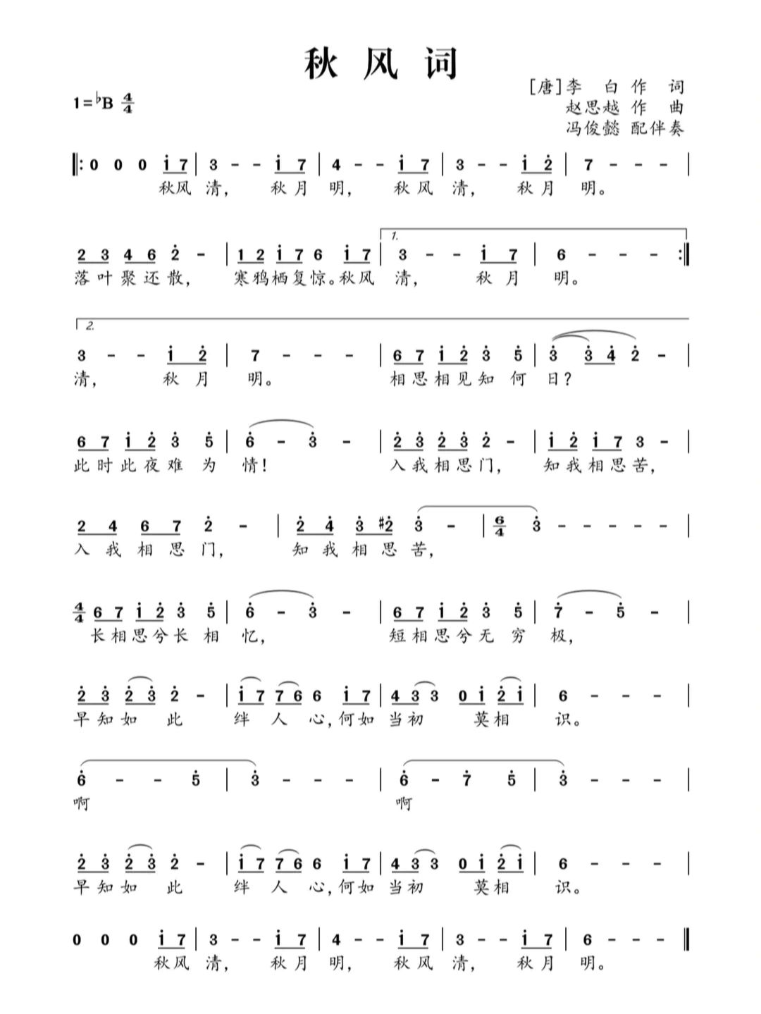 秋风词([唐]李白词 曹砚生曲) 歌谱简谱网