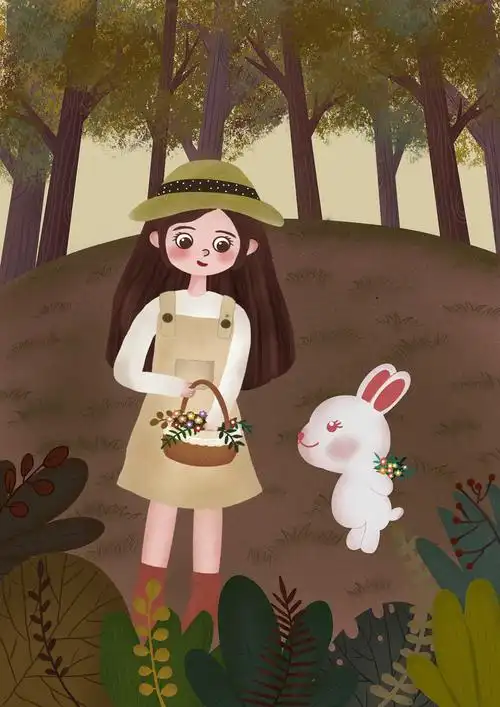 秋天一个女孩站在金色大树下的背影卡通水彩ai插画