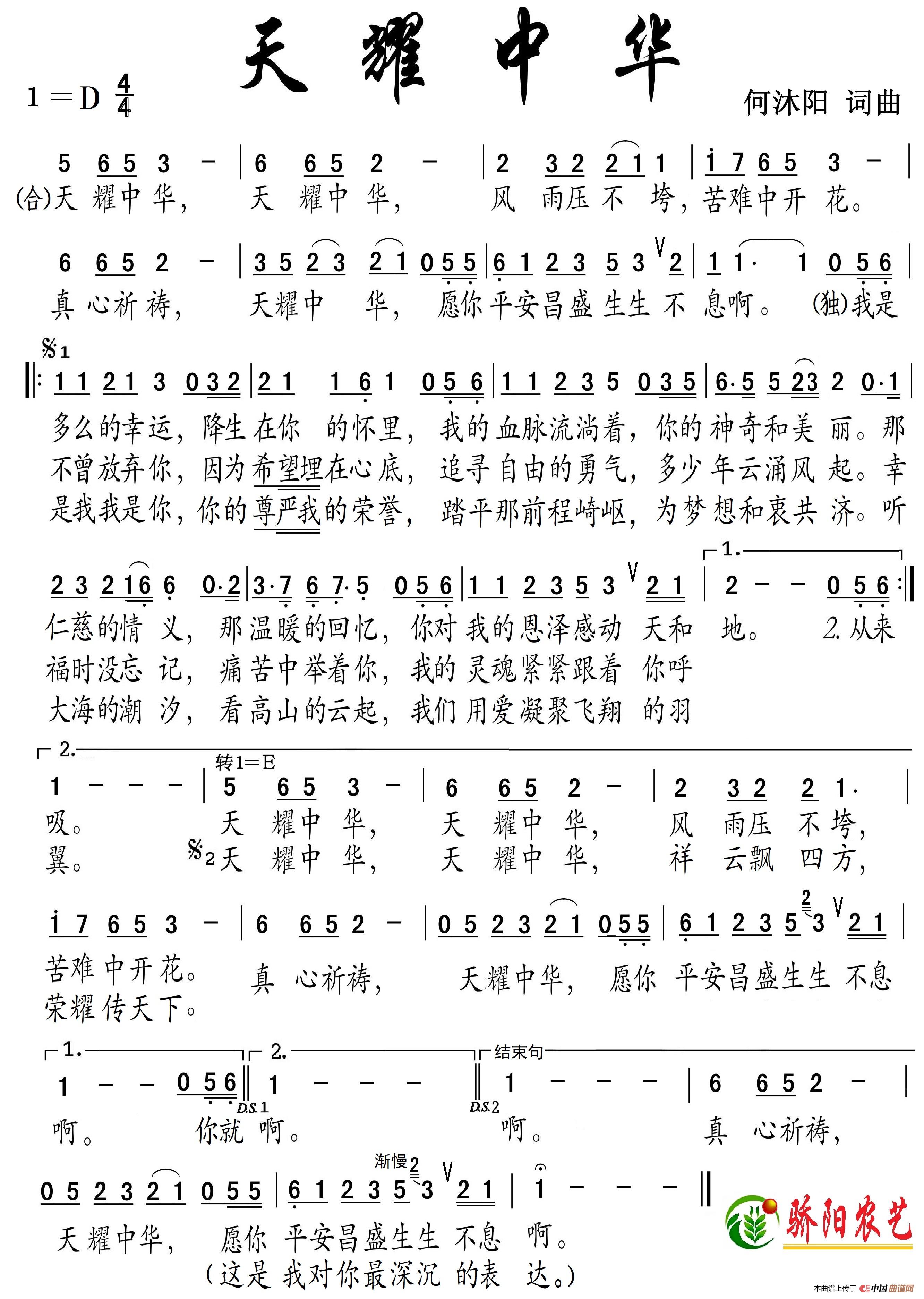 天耀中华简谱-张玲玲演唱-何沐阳/何沐阳词曲1