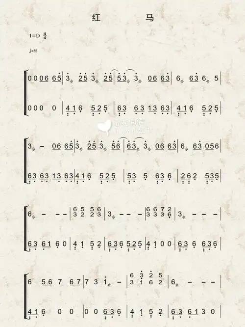 红马-我在江南撒把欢多无邪-抖音五线谱预览3