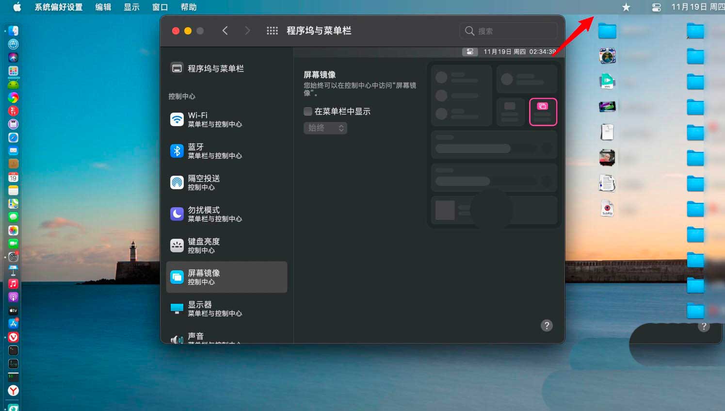 macos big sur菜单栏怎么添加删除控制中心?