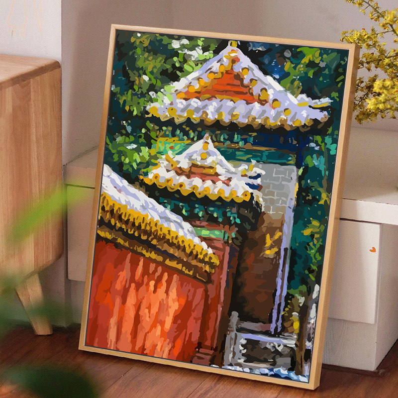 故宫春夏秋冬景点填充涂色数字油画 diy手绘丙烯油彩画包邮装饰画