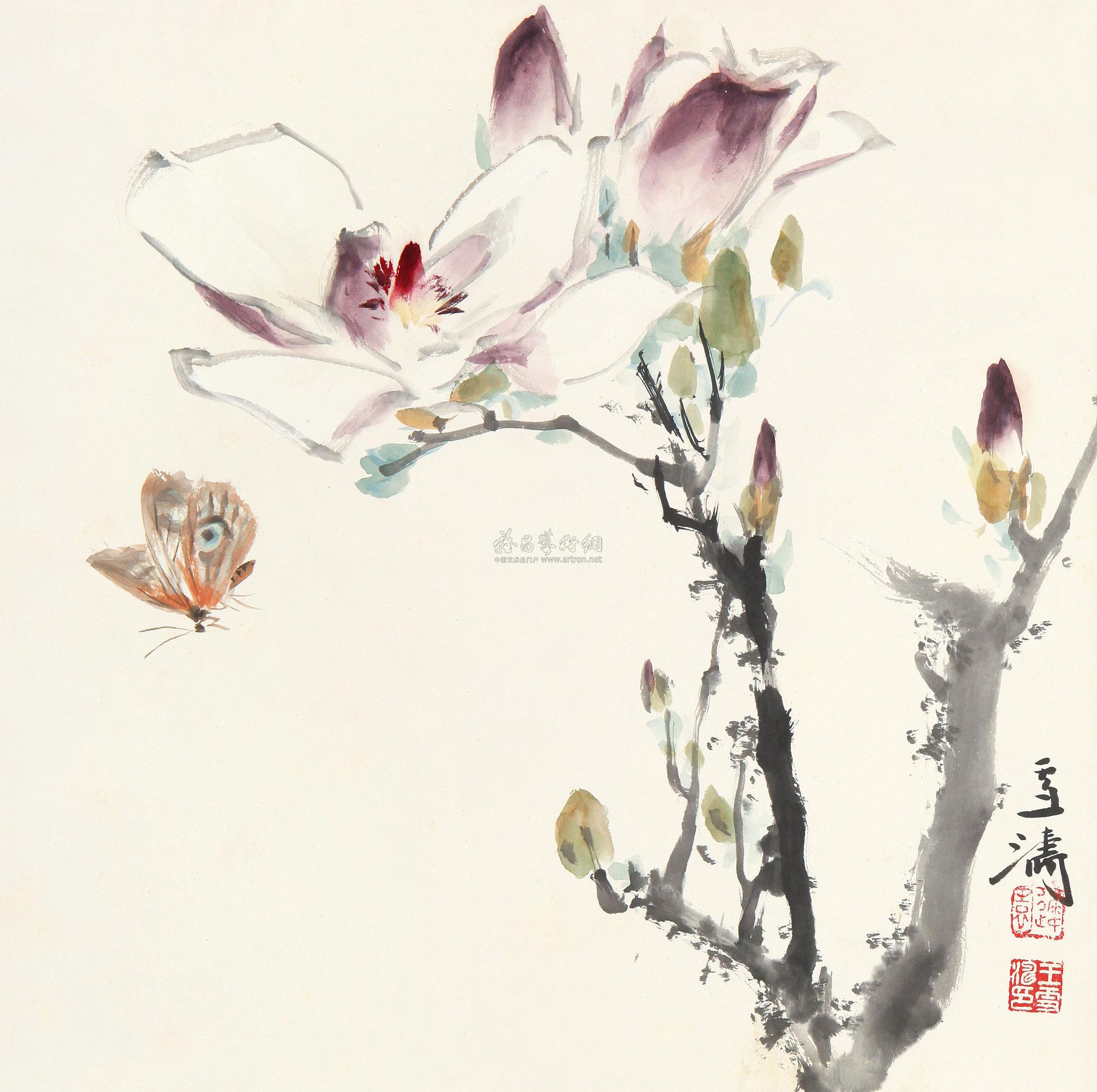 娄师白 玉堂春 1983年 作王雪涛 玉兰蝴蝶江寒汀 玉兰小鸟赵少昂 春