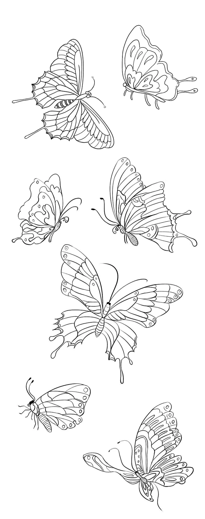 线描蝴蝶黑白线描画
