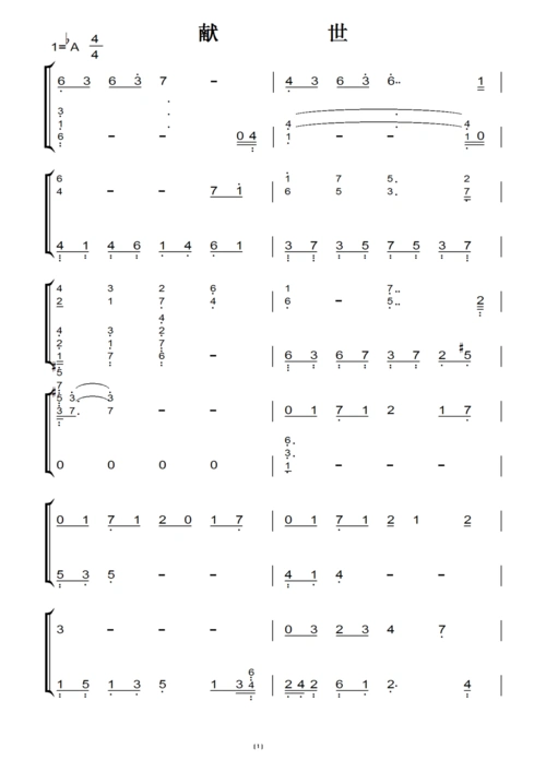周杰伦作曲 陈小春-《献世》(周杰伦)原版 钢琴双手简谱 钢琴谱 钢琴