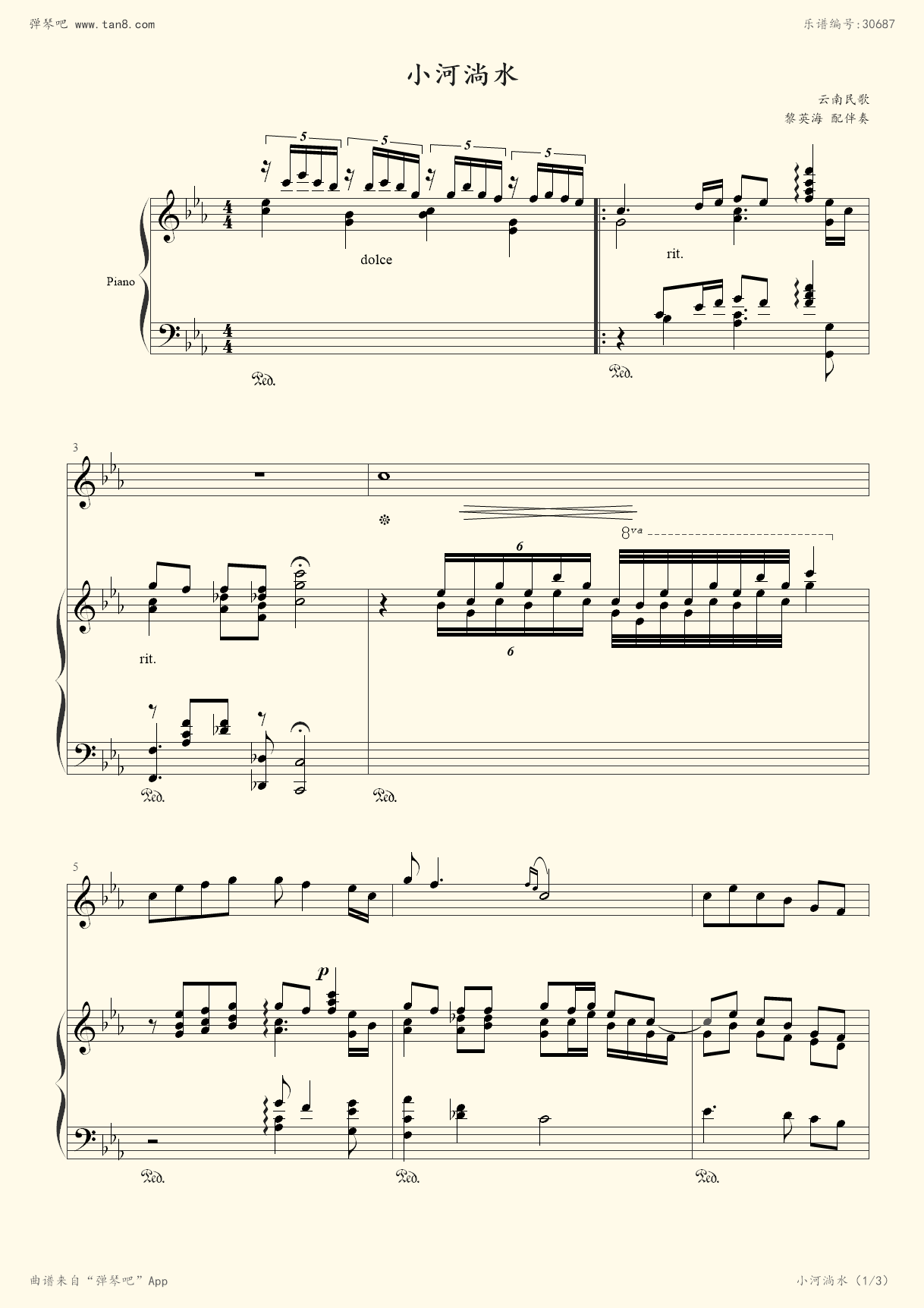 小河淌水,钢琴谱》李谷一|弹琴吧|钢琴谱|吉他谱|钢琴曲|乐谱|五线谱