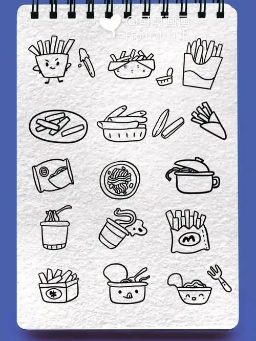 薯条食物面条简笔画
