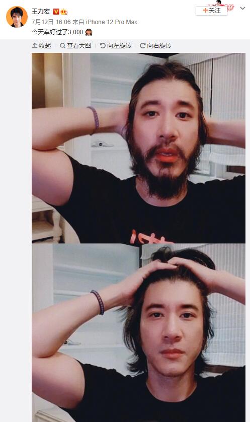 45岁王力宏晒最新造型满脸胡子已刮掉邋遢大叔变回帅气小伙