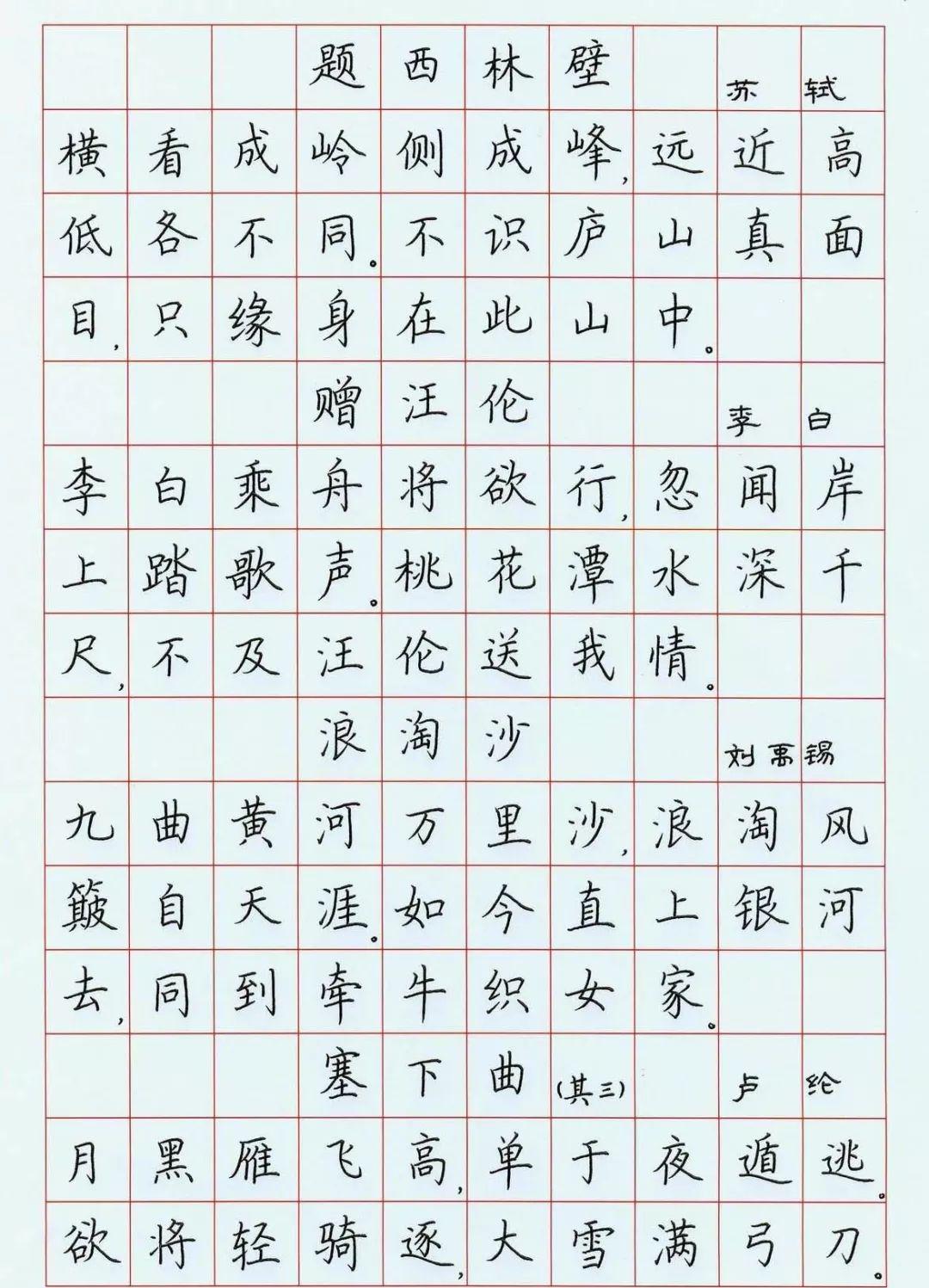 小学必背古诗词硬笔楷书钢笔字帖收藏打印一份练字学习两不误