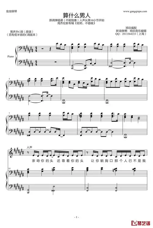 算什么男人钢琴谱-鸠玖原调弹唱版-周杰伦1