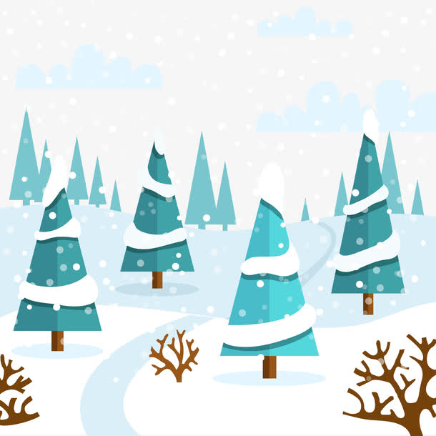 森林下雪卡通图片