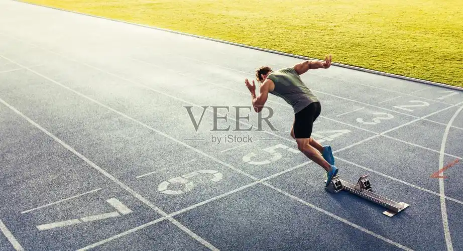 短跑运动员在跑道上从起跑点上起飞照片摄影图片