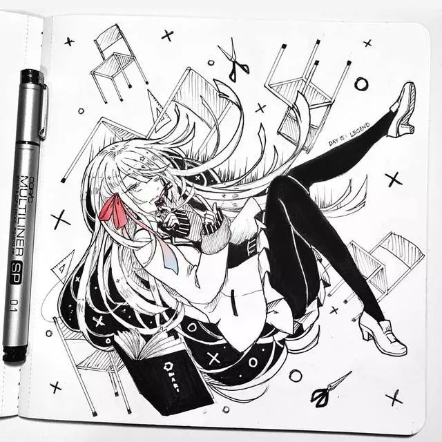 精美动漫手绘 女生动漫这样画 不上色也好看_作品