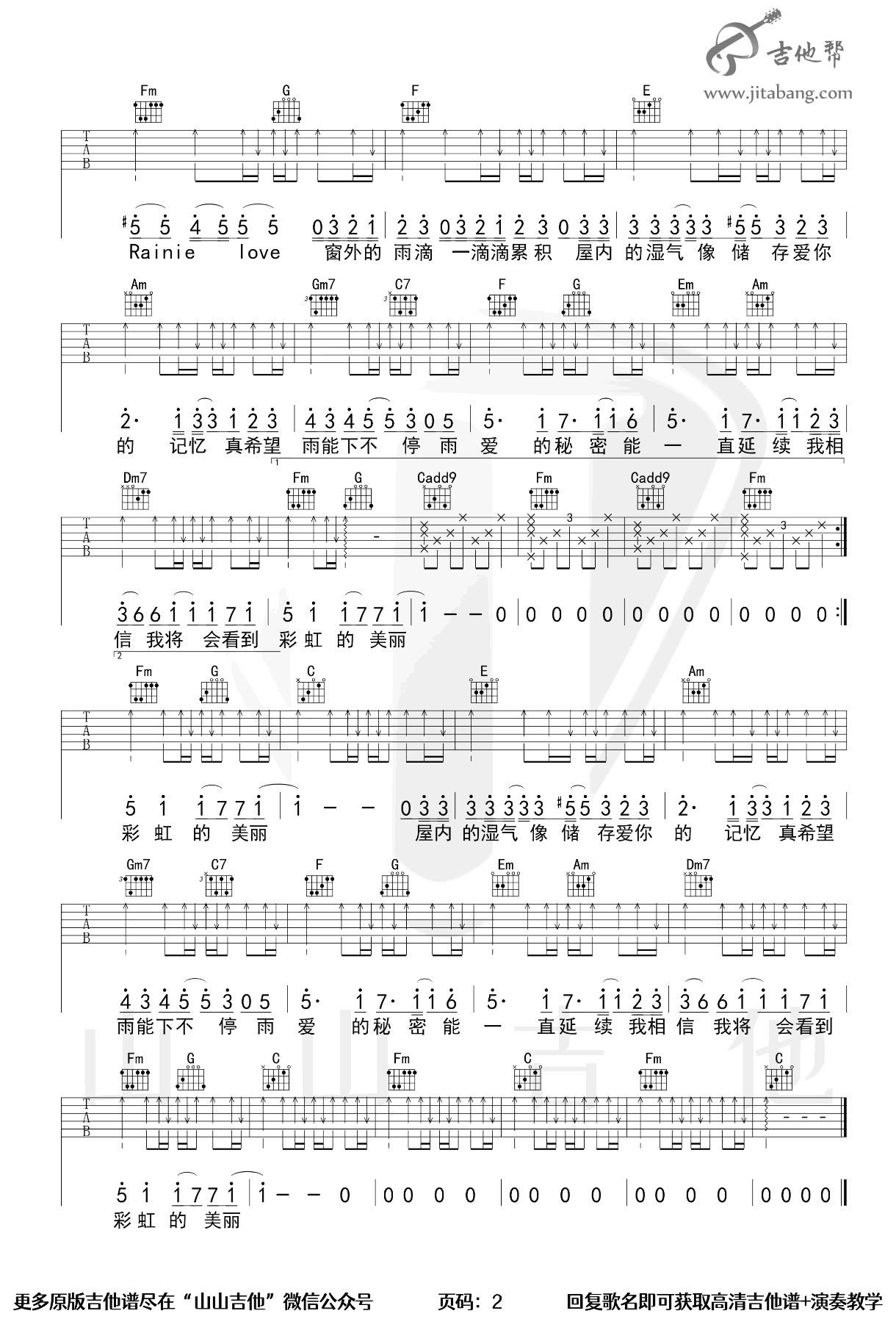 雨爱c调原版吉他谱山山吉他编配