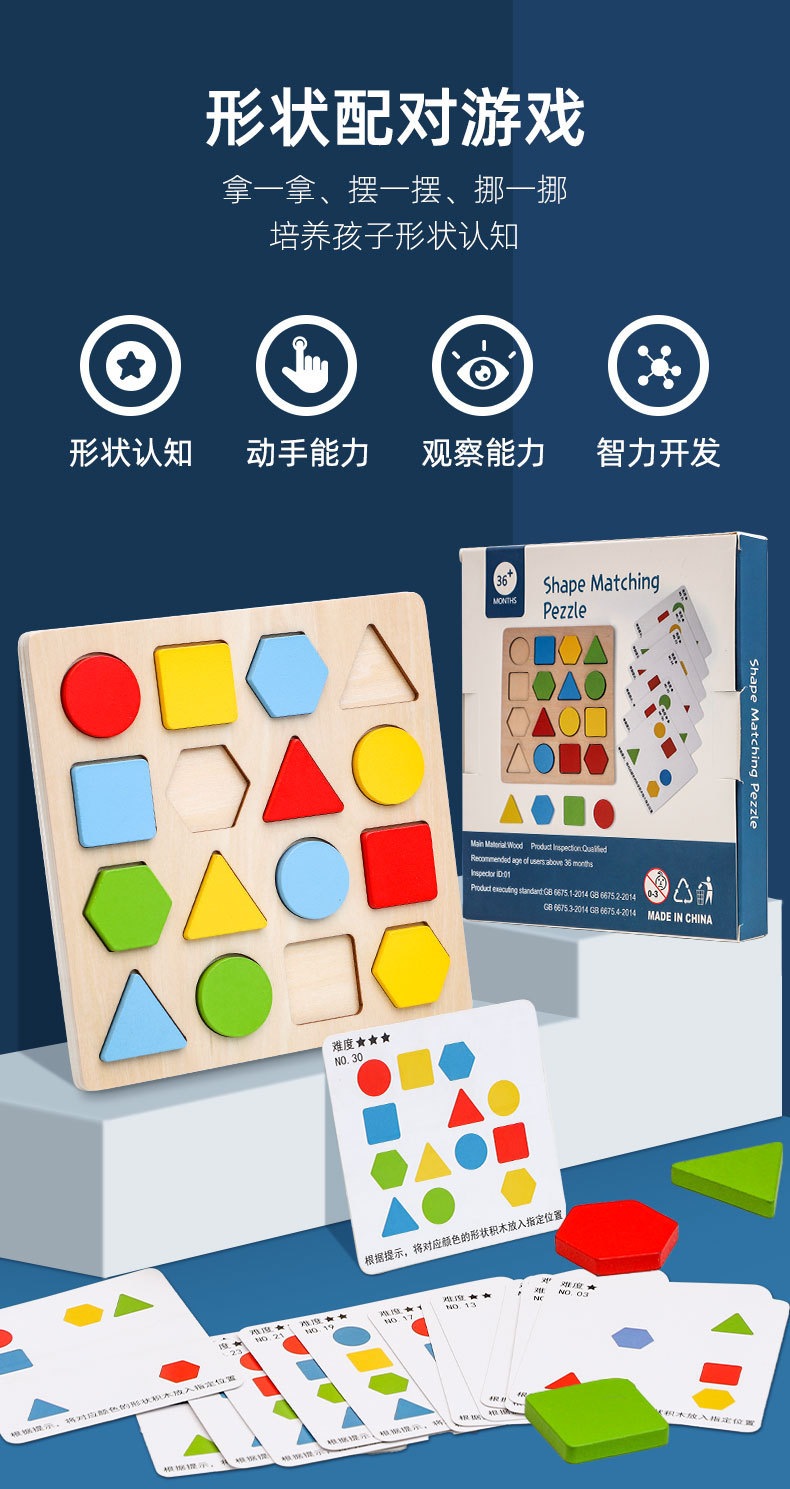 几何形状配对拼图儿童益智力观察力逻辑思维手眼协调训练早教玩具