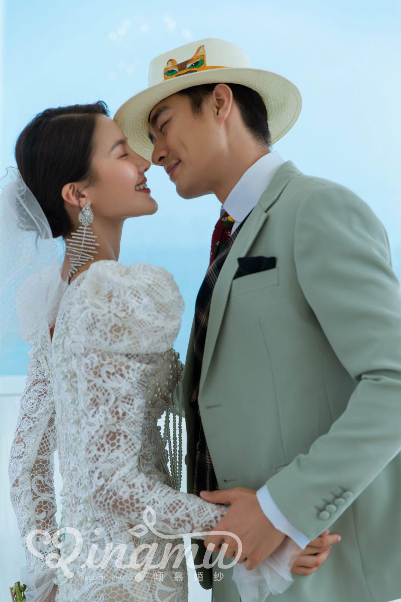 时尚大气内景婚纱照-白西装婚纱照