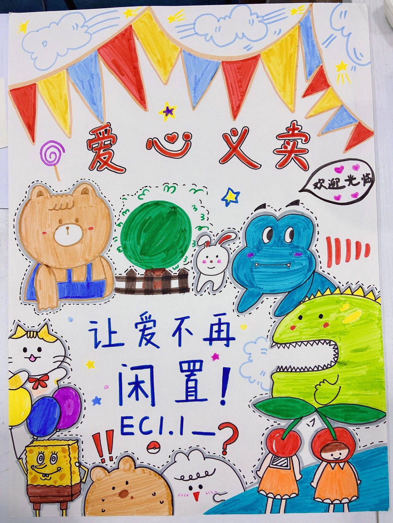 爱心义卖海报 勾线笔,得力24色马克笔