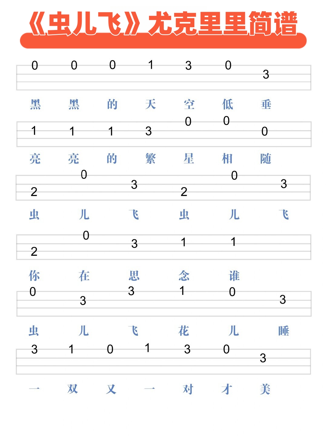 《虫儿飞》尤克里里简谱 《虫儿飞》的尤克里里简谱在手中跃动,如