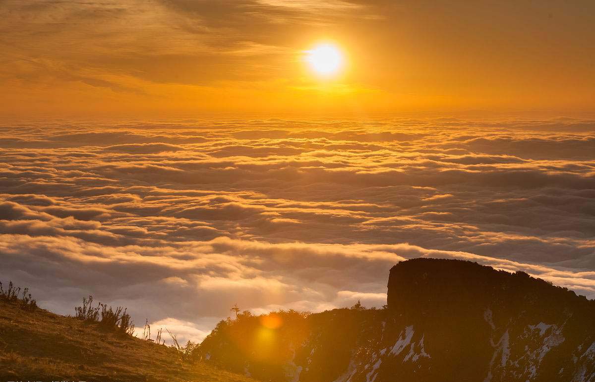 5点清晨守望美丽日出东方升起红太阳(手机拍)