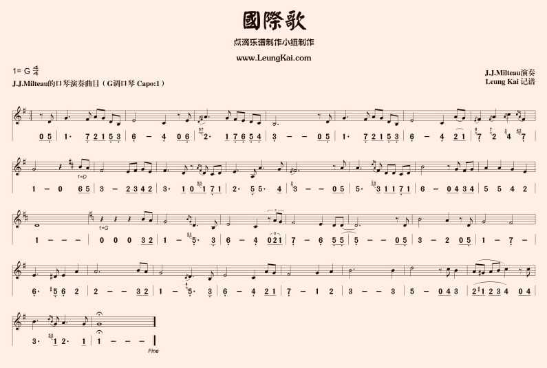 关于《国际歌》蓝调口琴版的 简谱和伴奏