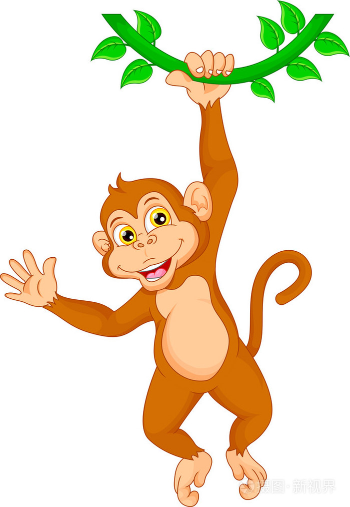 卡通猴挂在树上