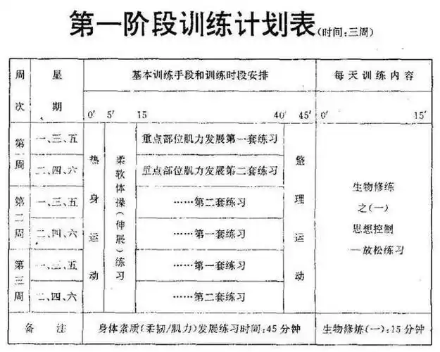 揭秘李小龙个人训练要法(附表格)