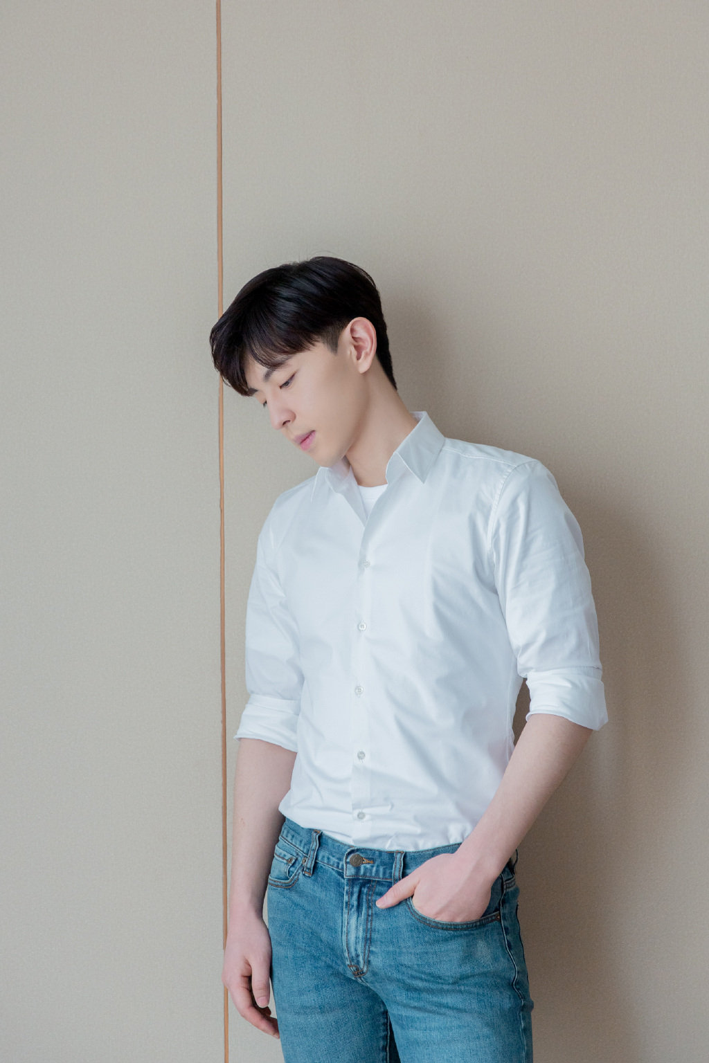 邓伦白色衬衫搭蓝色牛仔裤这一简洁搭配,尽显青春少年气质,难以掩饰的