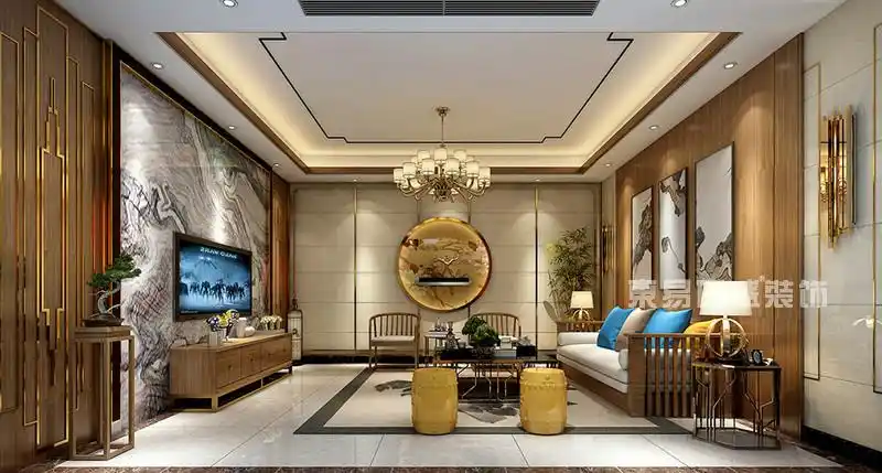 松山湖翡翠松山湖装修案例340㎡新中式别墅装修效果图