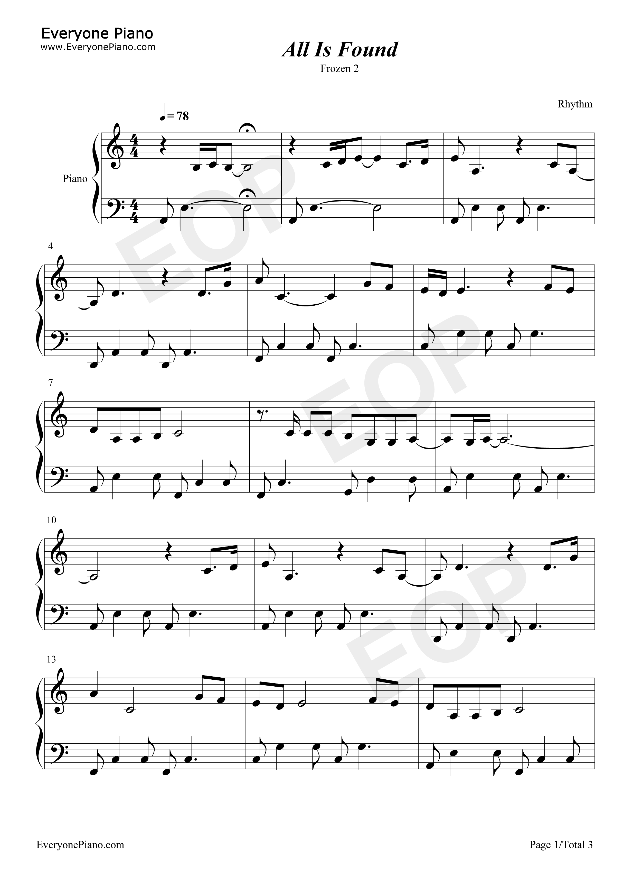 is found-冰雪奇缘2-frozen 2-回忆之河-钢琴谱文件(五线谱,双手简谱