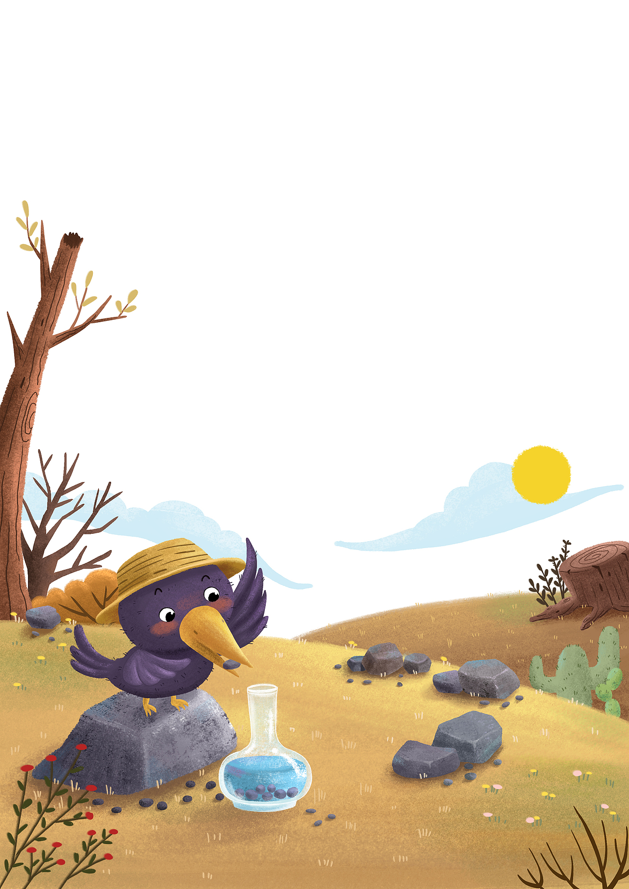 乌鸦喝水小故事|插画|儿童插画|威力狗_原创作品-站酷zcool