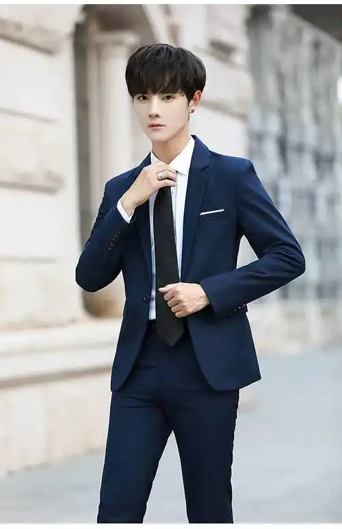 男士西装男套装学生装毕业西服五件套大学生面试正装外套休闲夏季藏青