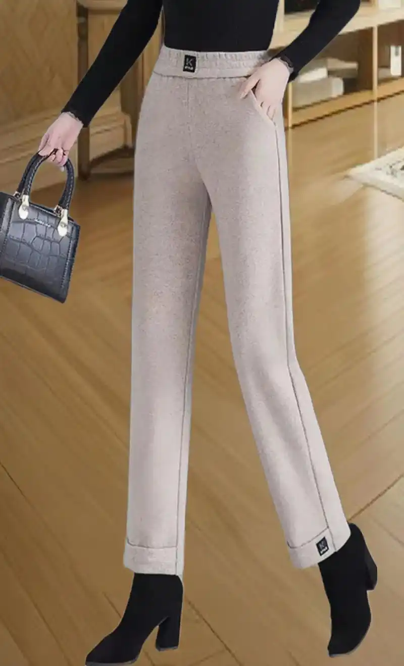 秋冬新款中年妈妈直筒高腰毛呢裤.