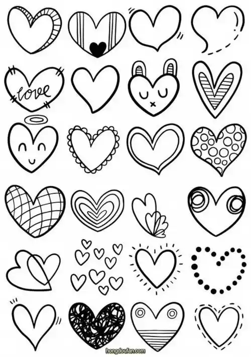 简单可爱的爱心手绘小图案简笔画大全涂色大图版