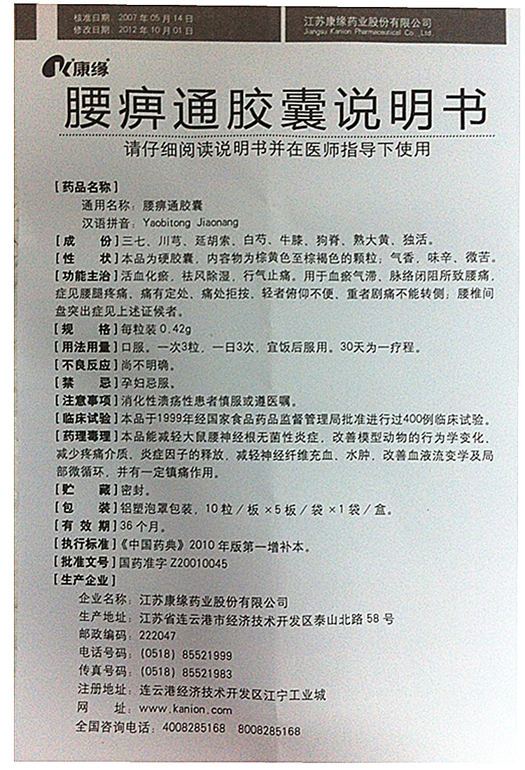 腰痹通胶囊(康缘)(腰痹通胶囊)_说明书_作用_效果_价格_健客网