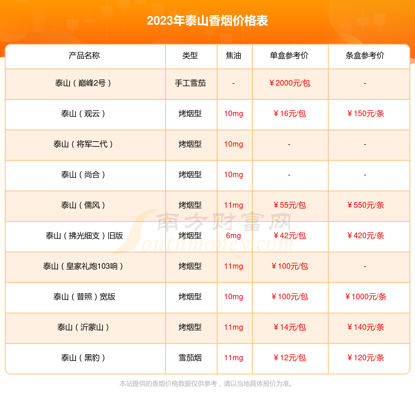 2023重庆泰山烟价格多少钱一条重庆泰山全部香烟价格表