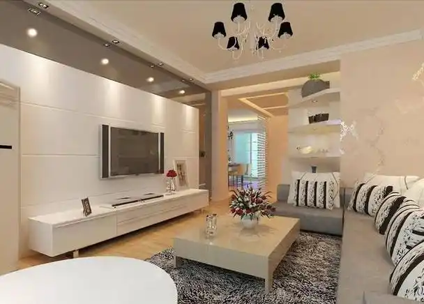 现代简约风格客厅微晶石电视背景墙装修效果图