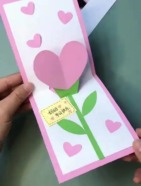 母亲节卡片制作教程(简单幼儿手工贺卡,用卡纸做一枝彩色的花,送给