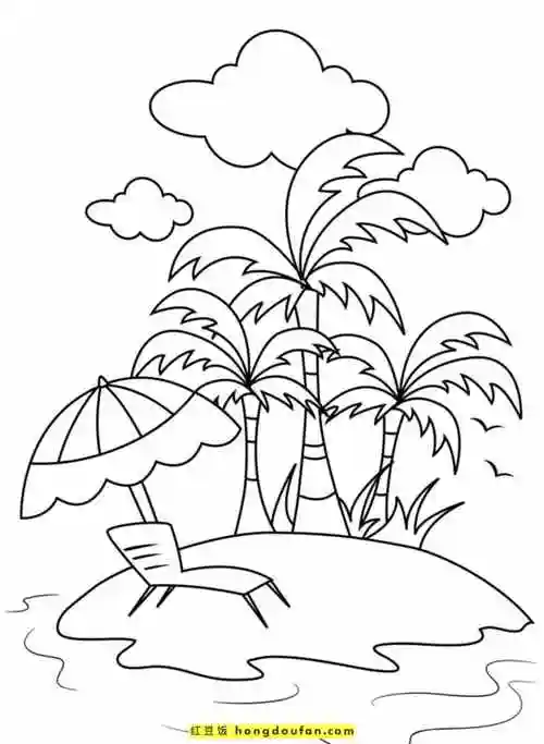 10张美妙的海洋漂亮的假期沙滩儿童涂色图片下载-红豆饭小学生简笔画